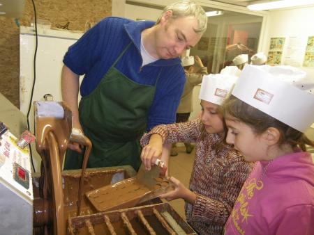 Après un petit film sur la provenance du cacao et la culture des cacaoyers, les chocolatiers en herbe se sont rendus dans l'atelier de fabrication, où ils se sont mis au travail.
