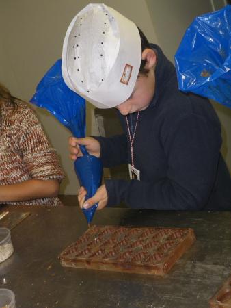 Ils ont ainsi pu chacun réaliser une forme découpée en massepain, qui sera ensuite trempée dans le chocolat au lait et décorée de brésilienne ou autre décoration suivant la fantaisie de chaque enfant.