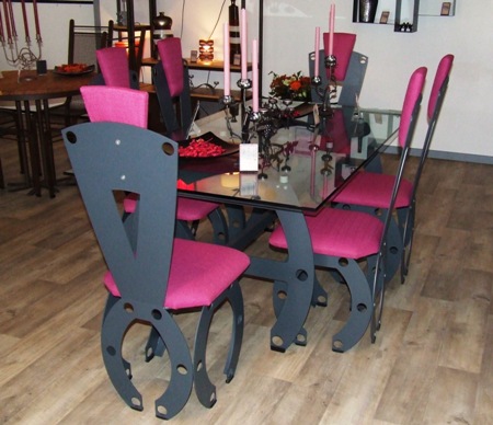 Il construit suivant son inspiration ou à la demande du client, du mobilier classique ou contemporain, escalier, luminaire, garde-fou de balcon, décoration d’intérieure ou d’extérieure, portail (peut-être motorisé), supports de jardinière et toutes confections métalliques sur mesure.