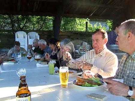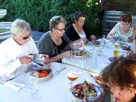 A partir de 19h., tous les “copineûs” se sont rassemblés au restaurant d’ “Animalaine”, côté jardin sous la tonnelle ensoleillée, pour un repas varié et copieux.