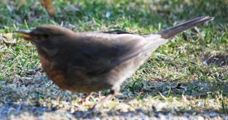 Les merles (M et Mme). Présents toute l’année dans les jardins où ils cherchent des vers.