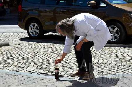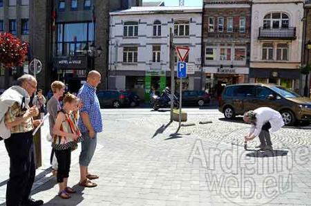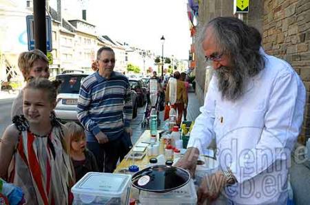 Il bat son plein à 100 mètres du marché. Aux marches de l’hôtel de ville. Les cheveux d’Einstein en pire, la barbe d’Ahasvérus en mieux, le corps de Don Quichotte tel quel. Un géant gesticulant. Le phénomène est à l’œuvre. Ce sera sa première démonstration : tout être est unique.