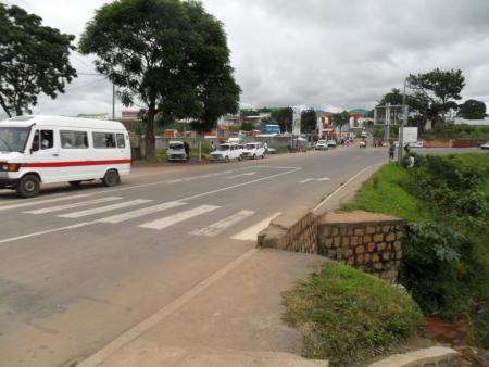 Une fois la route traversée, le piéton butte sur un mur. Heureusement, autrement, il tomberait dans un ruisseau dépotoir.