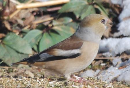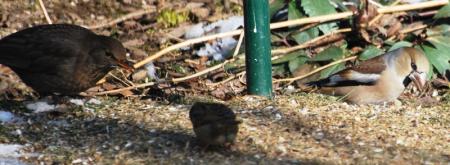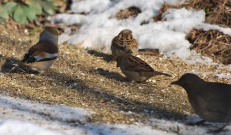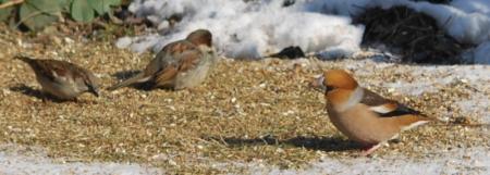 Lors de ces journées hivernales, nous avons aperçu les fidèles des années précédentes. Mais aussi, une nouvelle espèce, le GROS-BEC, CASSE NOYAUX, surpris par sa présence, nous lui avons donné la priorité de nos prises de vues.