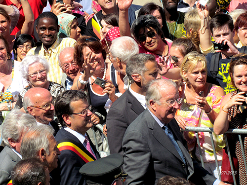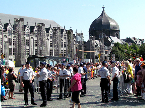 Avec 25 minutes de retard, le bain de foule a enfin commencé de la Place Saint-Lambert à l’Hôtel de Ville.