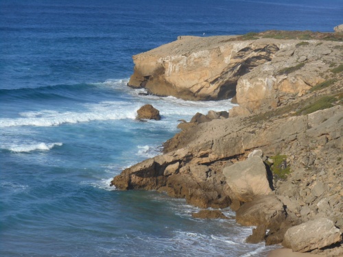 Après Aljezur, capitale de la patate douce, se situe Monte Clérigo (prononcez Monte Clérigouch), un merveilleux petit port avec une longue plage de sable blond et des falaises merveilleuses. Quel ravissant spectacle de la nature ! C’est tout simplement l’Algarve ! A 15 minutes, les surfeurs apprécient le village de Amado (« l’aimée en français). Le point le plus à l’Ouest de l’Europe s’appelle le Cap St-Vincent, entouré lui aussi de belles falaises. Le phare de 1900 abrite la lentille de Fresnel. Sagres, promontoire sacré chez les Romains, est nommée « la fin du monde » jusqu’au XVe siècle. Dans la forteresse de Sagres, se trouvait une école de navigateurs, avec une rose des vents. Ils apprenaient du haut des falaises.