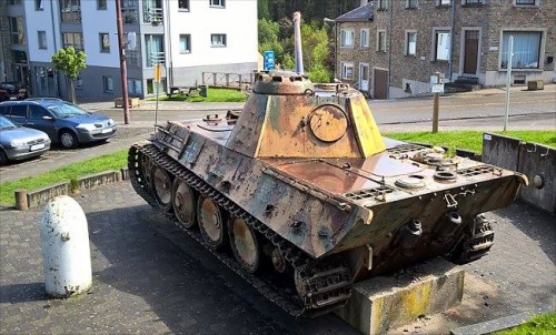 C’est tout-à-fait par hasard, un événement dramatique pour les Allemands qui eut des conséquences heureuses pour les Houffalois que ce tank, à plus proprement parler ce char ou Panzer (un PzKpfw V), a échoué dans l’Ourthe, au pont de la route de La Roche, lors du repli de l’armée allemande (15 janvier 1945).