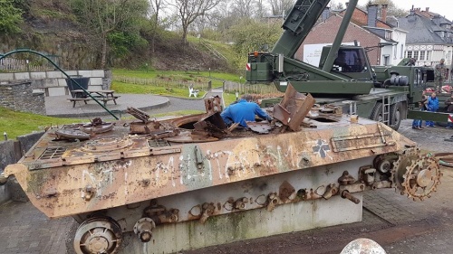Mai 2017. Le tank , ainsi que l’appellent les Houffalois, vient de quitter son emplacement pour une rénovation qui va durer… un certain temps.