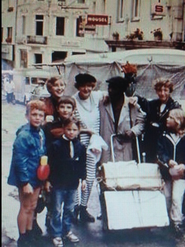 Dame, dans les années 50, l’imagination nourrie par Tintin au Congo, c’était pour beaucoup le premier « nègre » qu’on voyait pour de vrai. Il a laissé ce souvenir bien précis dans toutes les mémoires : il était gentil, jovial, et il aimait les enfants. Certains racontent : on se réjouissait d’être le jour du marché, notre grand-mère nous conduisait le voir. Il remplissait à ras bord de carabouyas un sachet de papier blanc, format des sachets à frites, il le tendait de la main droite avec « une rawète » dans la gauche :voilà pour le petit bougna ! Parfois il était accompagné de son fils qui venait dîner avec nous à l’école, ajoute une grand-mère (témoignages repris dans le groupe facebook arlonais).
