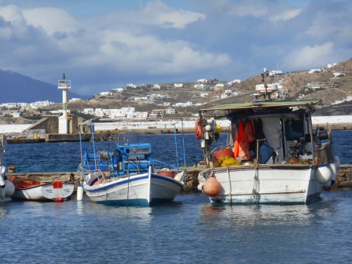 En novembre, le ciel est très lumineux et l’île respire la tranquillité. Le calme apporte une sensation bienfaisante, les Grecs discutent volontiers avec la dizaine de touristes présents dans le port. Pétros, le pélican vedette et mascotte de Mykonos, se laisse un peu caresser, dans une des nombreuses ruelles de Chora. A chaque passage dans le port, l’on reconnaît quelques pêcheurs, tels que Yianis et Panayis.
