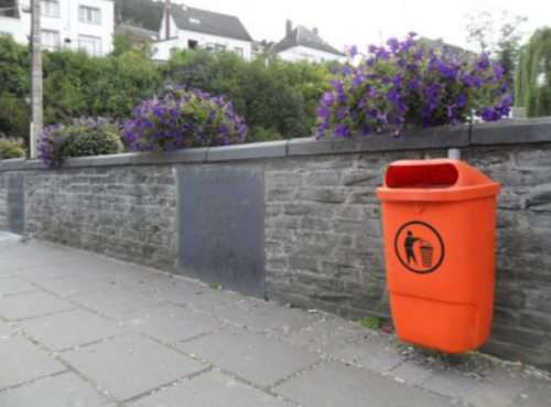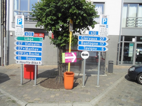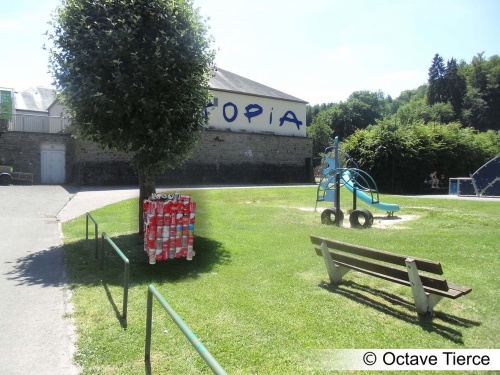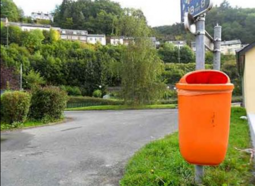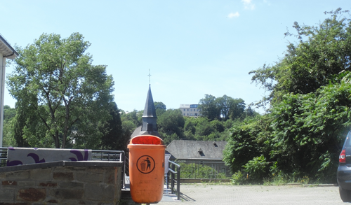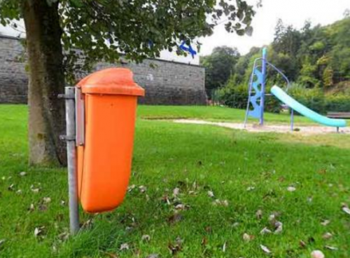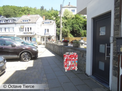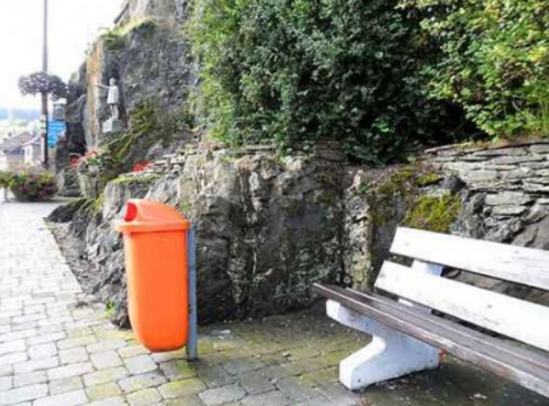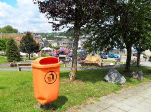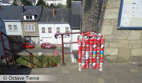 Houffalize. Les nouvelles poubelles sont installées. Comme promis, pour le début des vacances. Des poubelles à canettes en canettes. À la polychromie anarchique.