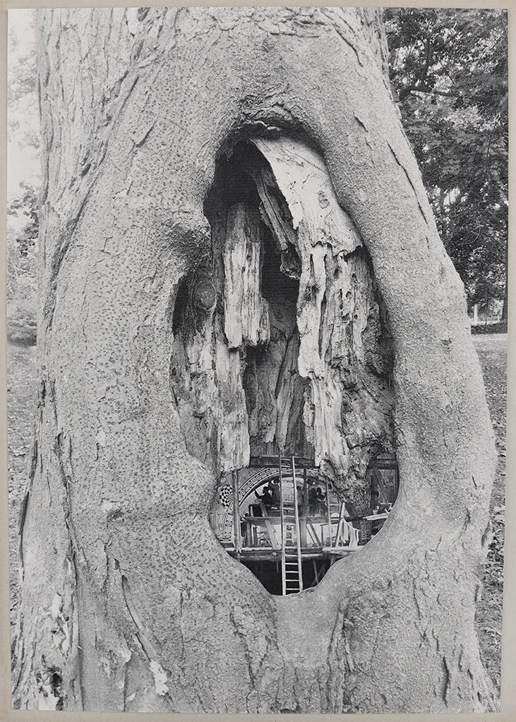 ** Mitch Epstein (Etats-Unis/°1952) : "New York Arbor" (2011-2012), une série de 42 tirages, dont trois photos monumentales sont exposées, témoignages de la relation symbiotique liant les habitants de la "Big Apple" à leurs arbres, Mitch Epstein écrivant : "A force de photographier les arbres de la ville, je me suis mis à considérer la ville comme une forêt, la société et l'architecture étant peu à peu éclipsées par la nature. J'ai développé une perception différente de l'espace urbain, habituellement saisi comme articulé autour de l'humain, et les arbres sont devenus les personnages principaux de la ville." Quant à l'avis d'Astrid Ullens de Schooten Wettnall, présidente de la "Fondation A. Stichting" : "C'est un hymne à la vie, à l'espoir, à la grandeur du temps qui passe et une ode en noir et blanc à la nature."
