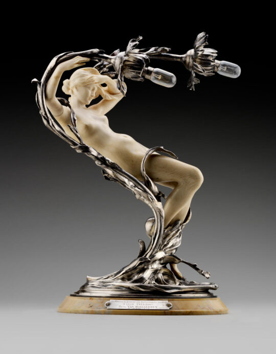 Lampe aux nymphes (F. Hoosemans & E. Rombaux)/1900/argent, ivoire & marbre ⓒ « Fond. Roi Baudouin »