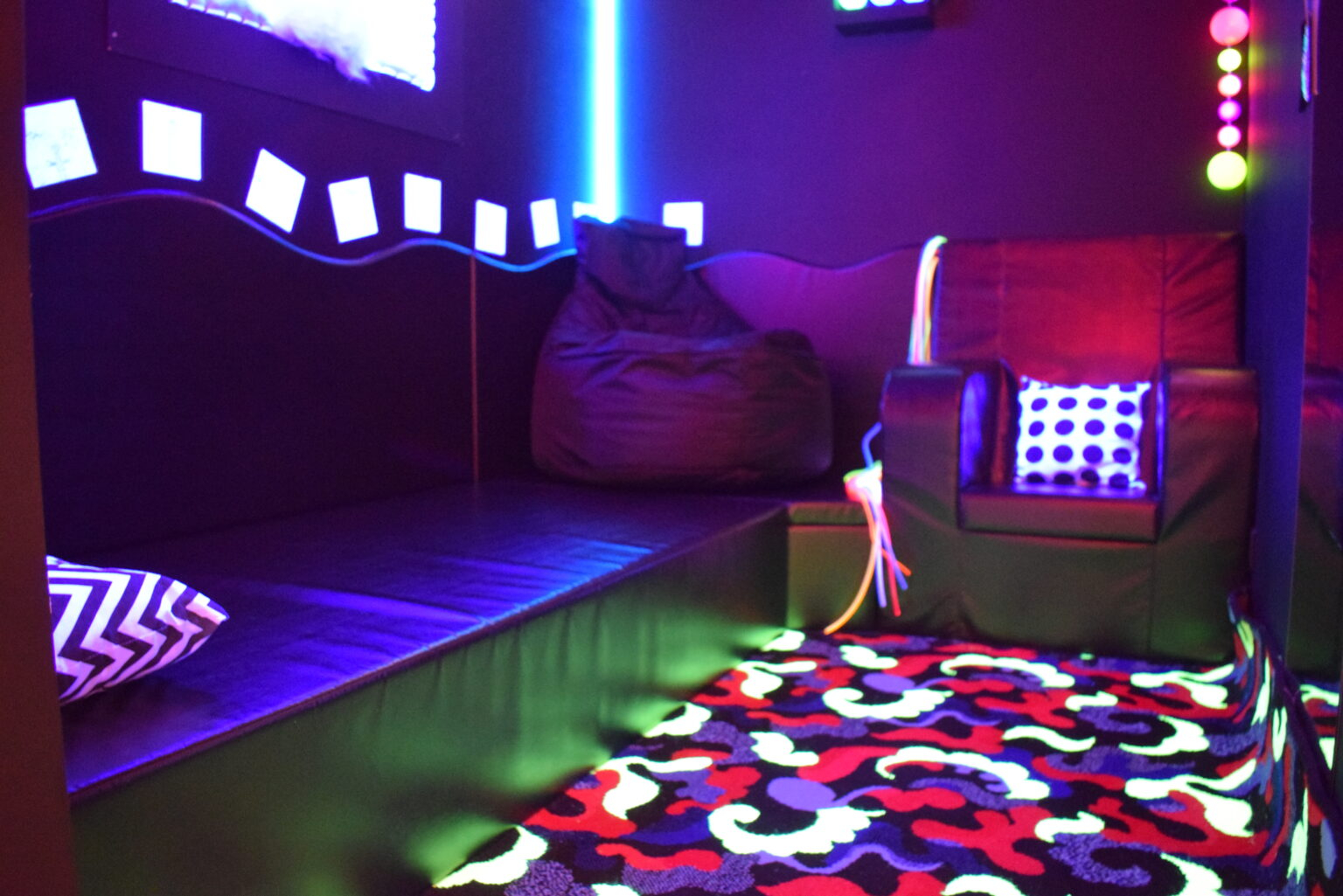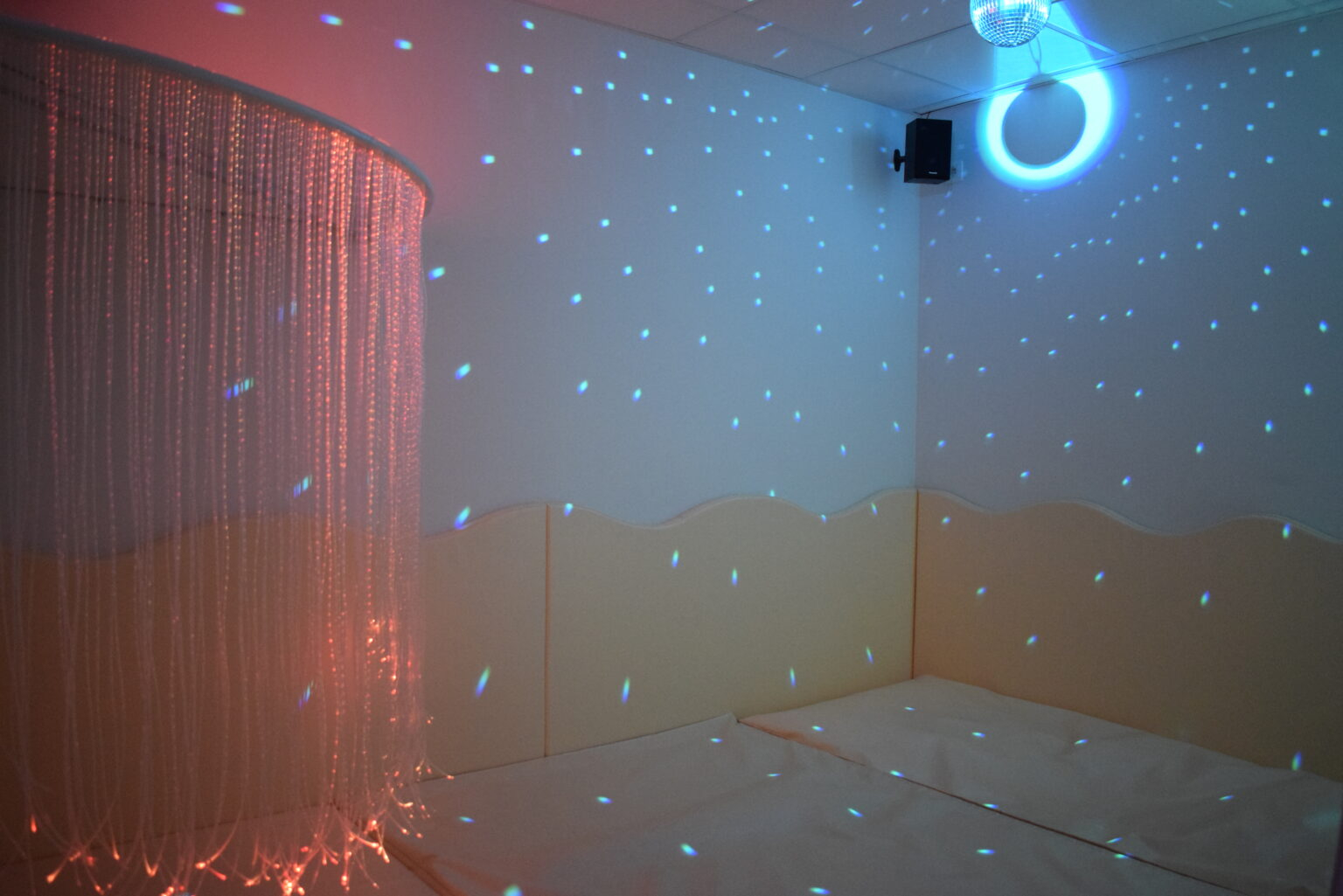 L’entrée du bâtiment est occupée par les 4 pièces du snoezelen, régulièrement loué à d’autres institutions de la région.