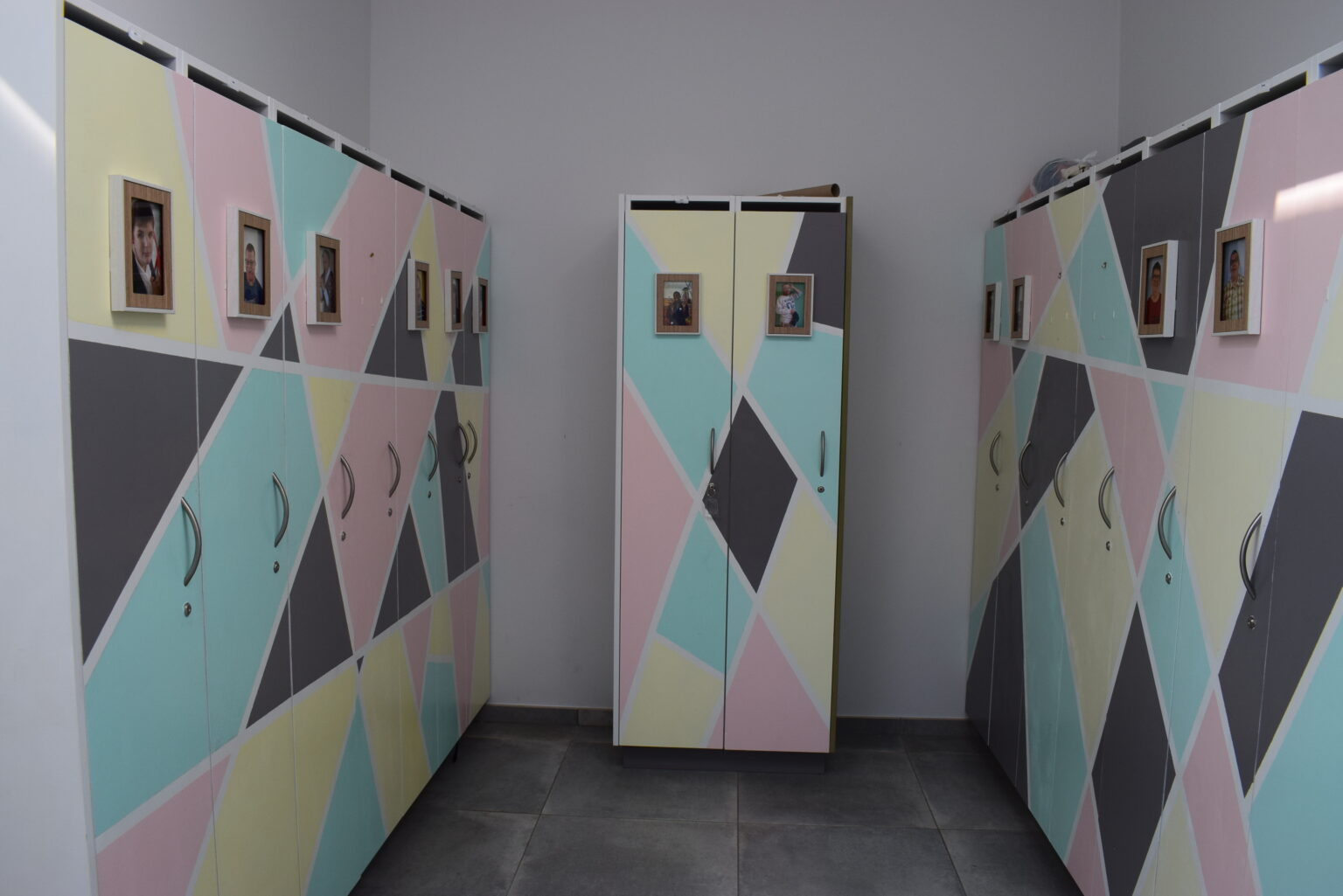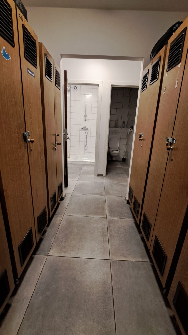 On y trouve encore le vestiaire, aux armoires individuelles décorées par les bénéficiaires, une salle de change équipée et des toilettes/douches adaptées.