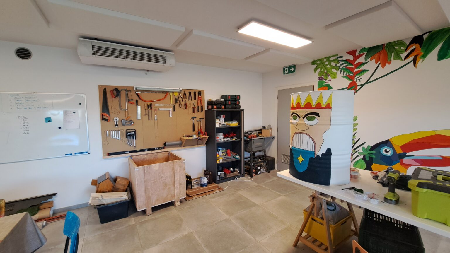 Le second sert d’ateliers de peinture, de dessin, de travail du bois, de fabrication de bougies et autres activités de bricolage.