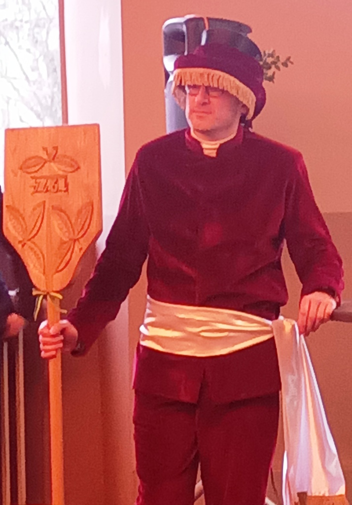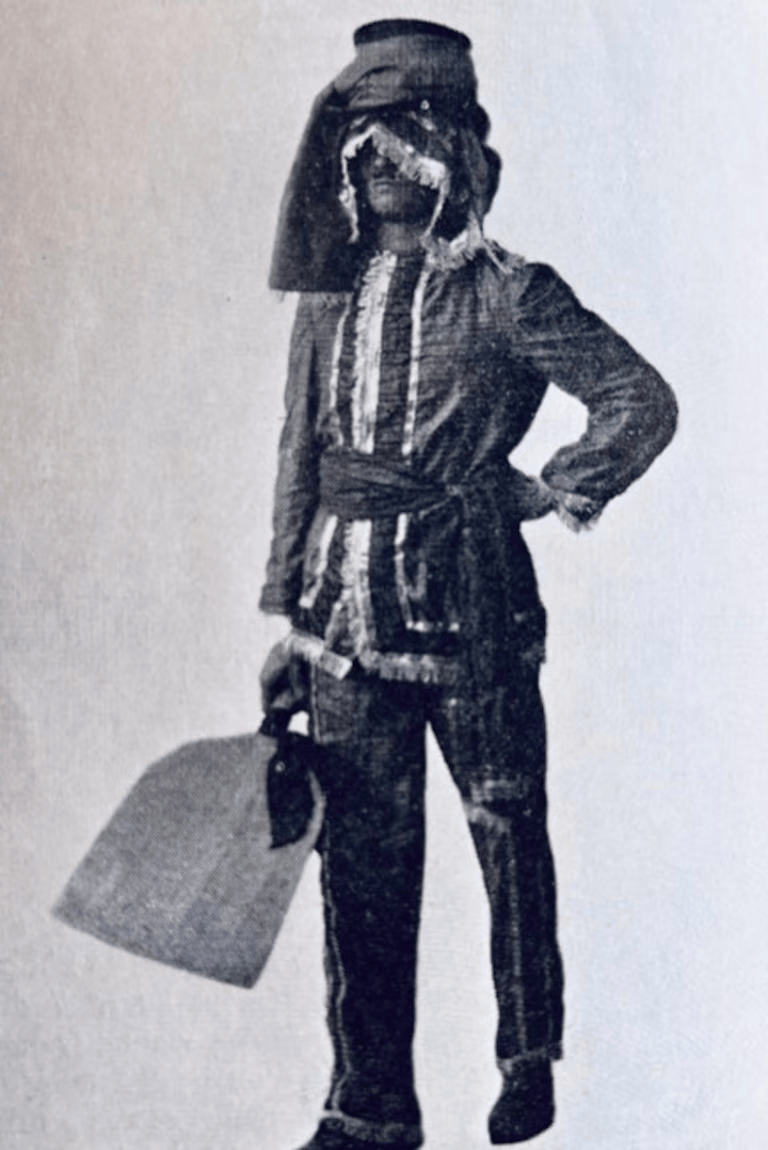 Le Trouv’lê porte un costume rouge de haguette dont le bouillonné a été abandonné il y a longtemps.