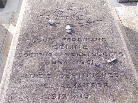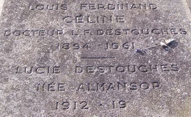 Pierre tombale. Veuve en 1961 et convaincue de le rester jusqu'à sa mort, Lucie fit graver sur la pierre tombale, en dessous de son mari Céline : "Lucie Destouches, née Almansor 1912 - 19.".