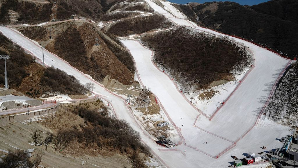 Un ruban blanc serpentant au milieu de broussailles arides: l’image des pistes de ski alpin des JO-2022 captée depuis son vol vers la Chine par le Norvégien Kjetil Jansrud pourrait résumer “l’aberration” environnementale dénoncée par des experts.