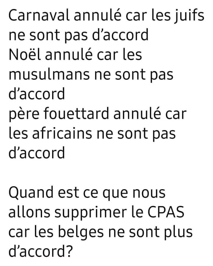 Et certains commentateurs du brûlot tombent dans le panneau. Ils croient devoir voler au secours du CPAS, qui n'en a pas besoin, alors que c'est l'antisémitisme et le racisme qu'il faut combattre.