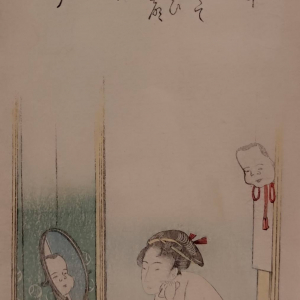 Installé définitivement à Paris, dès 1874, Félicien Rops côtoie les milieux et évènements japonisants pendant une grande partie de sa carrière. L’artiste namurois rêve du Japon … et, en même temps, s’en défend. Il réalise, et pourtant critique et conspue, ce qu’il appelle des « Japoniaiseries », un mot-valise combinant « Japon » et « niaiseries », inventé par l’une de ses connaissances, l’écrivain & critique d’art français, Jules Champfleury (1821-1889).