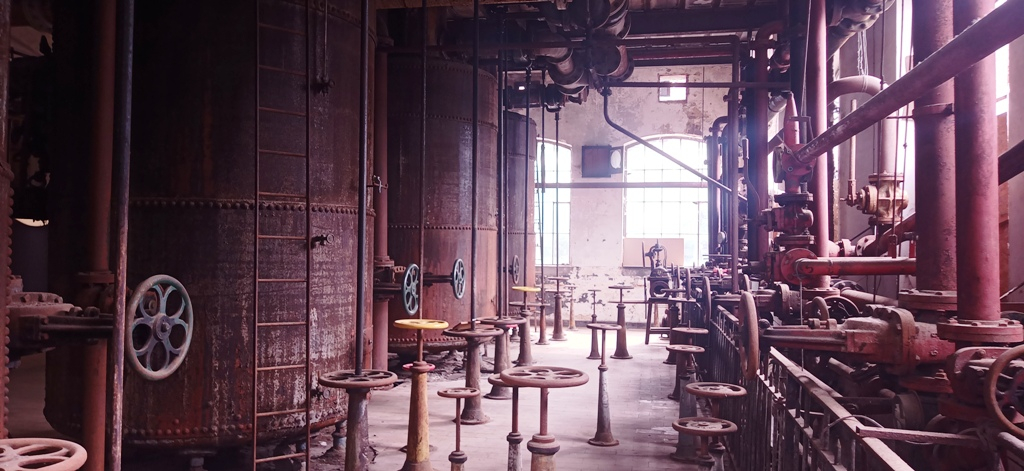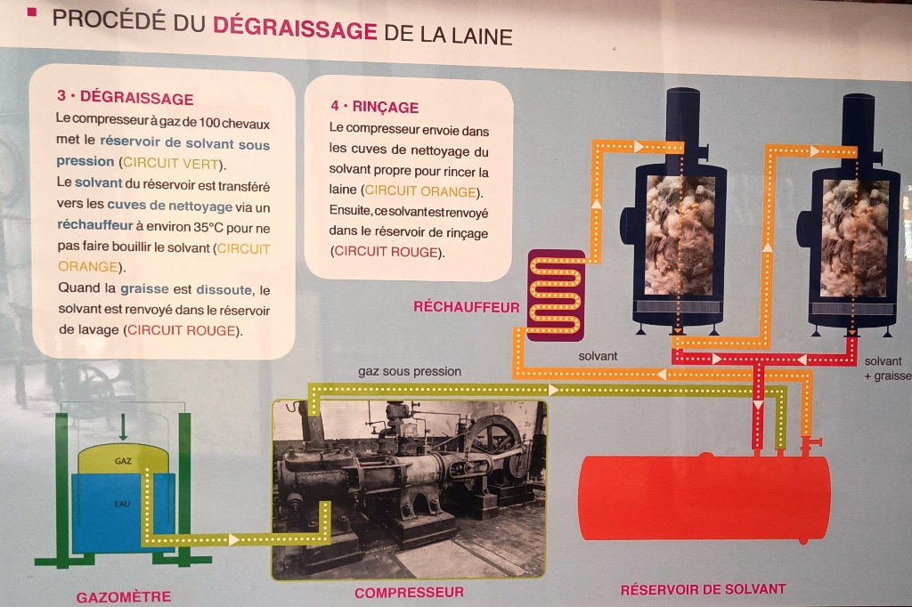Dans un long bâtiment de style éclectique, le site de l’ancien Solvent belge rue de Limbourg à Verviers recèle de véritables trésors d’archéologie industrielle dans sa salle des machines équipée de diverses mécaniques toujours en état de marche datant de la fin du XIXe siècle : appareils à solventer et surtout cinq machines à vapeur qui faisaient tourner des ventilateurs et des pompes, toujours en état de fonctionner grâce aux soins attentifs de Léon Sagehomme, maître des lieux et, par ailleurs, vice-président du Comité scientifique d’Histoire de Verviers (ancien Conseil scientifique du Centre touristique de la Laine et de la Mode [CTLM] puis d’Aqualaine).