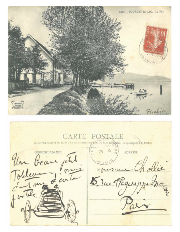 Lors de la visite de presse, les deux commissaires, Virginie Devillez, experte et conseillère en art, détentrice d’un Doctorat, décerné par l’ « ULB » et Isabelle de Longrée, du « Delta », ont attiré note attention sur l’oeuvre du peintre avant-gardiste français Francis Picabia (Francis-Marie Martinez de Picabia/1879-1953), qui détourna la carte postale dans le domaine de l’art, s’inspirant de cartes postales pour créer ses tableaux. Plus besoin, donc, de se déplacer, puisque d’autres s’en sont chargés pour lui, sa démarche postimpressionniste conceptuelle marquant le début des avant-gardes du XXè siècle.