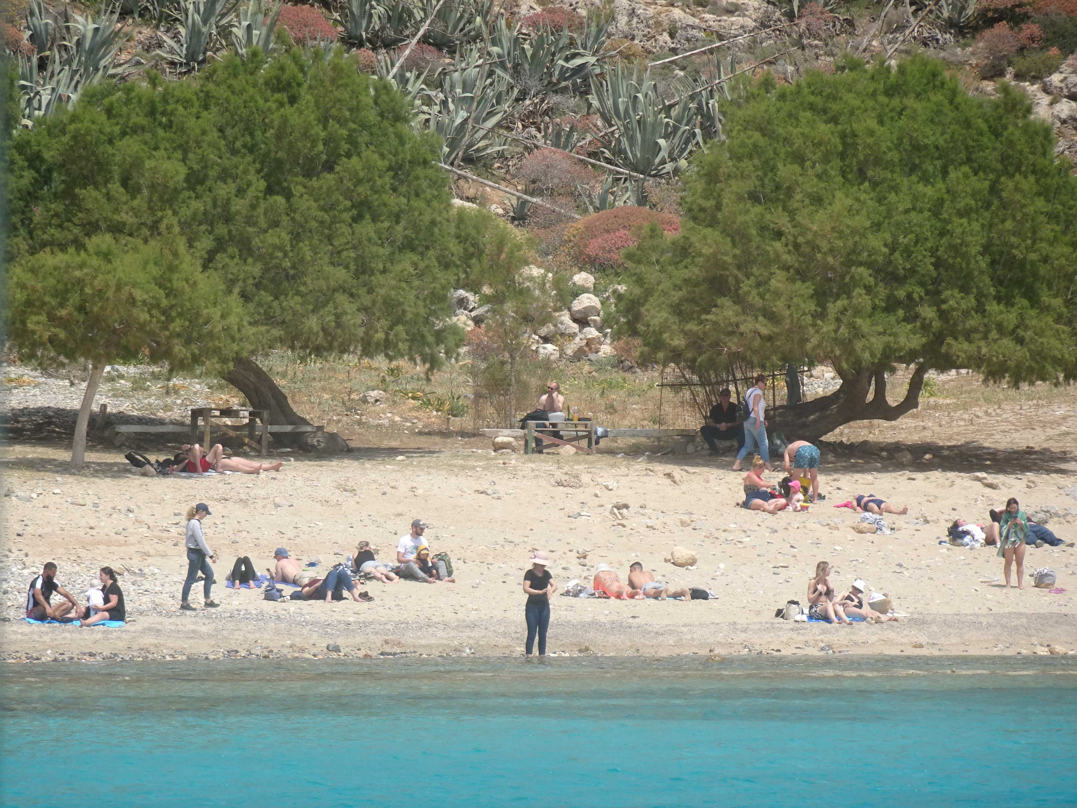 L'excursion à Balos se fait au départ de Heraklion en passant par Platanias, mon lieu de séjour situé à 10 km de Chania. Le bateau quitte le port de Kissamos pour la presqu'île de Gramvusa et le lagon de Balos, connus pour les eaux cristallines et les plages de sable blanc. Les visiteurs peuvent profiter d'un soleil radieux (25° début mai), nager, se détendre ou boire une bonne bière sur le bateau. Ces deux plages donnent un certaine impression de la Polynésie française.