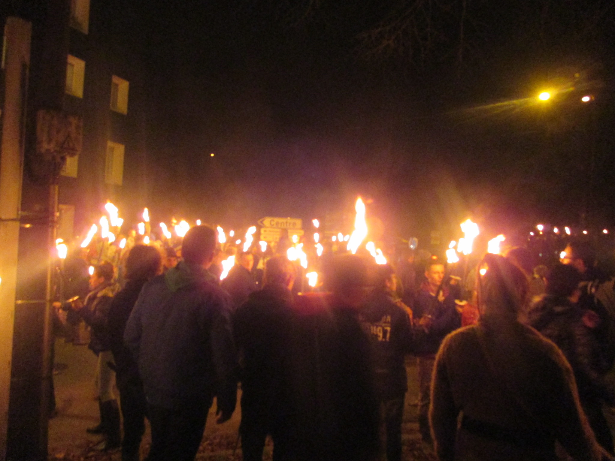 Le déroulement de la fête est semblable dans les trois quartiers, le 10 novembre, vers 17 heures 30, membres du comité et musiciens bénévoles issus de différentes sociétés se réunissent dans un café du quartier ou dans une salle. Vers 18 heures, le cortège se forme petit à petit. Les enfants avec des lanternes fabriquées dans les classes ou avec une torche qu’ils brandissent fièrement attendent que les musiciens donnent le ton. Un long serpent lumineux s’ébranle alors pour aller rejoindre l’endroit où le bûcher est dressé. Ils jouent un air entraînant « Lès èveûyes du Sint-Mârtin ». Sur le terrain, le feu est bouté au bûcher pendant que les musiciens jouent et que des farandoles tournent autour du brasier. Le mannequin consumé, les musiciens entament un dernier morceau et redescendent en ville. Quand les enfants sont de retour dans leur quartier, ils reçoivent un sachet de friandises puis rentrent à la maison tandis que les plus âgés sortent. Dans les cafés, l’ambiance est toujours très … chaude.