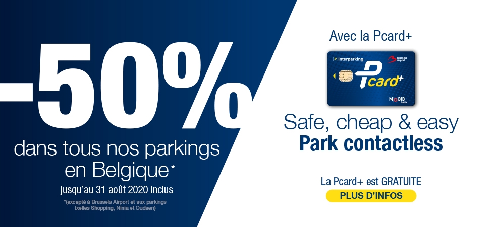 … Et surtout n’oublions pas que jusqu’au lundi 31 août, muni de notre « Pcard+ », gratuite, d’ « Interparking », nous disposons d’une réduction de 50% pour l’utilisation de tous leurs parkings belges, à l’exception de ceux situés à Antwerpen (Anvers) : « Oudaen » ; à Ninove : « Ninia » ; à Ixelles : « Ixelles Shopping » ; & à Ninove : « Ninia ». Pour Zaventem, celui de l’ « Aéroport » n’offrira cette réduction de 50% qu’à partir du lundi 15 juin, offrant, néanmoins, dès maintenant, une demi-heure de stationnement gratuit, exclusivement dans ce parking, à tout détenteur de la « Pcard+ »…