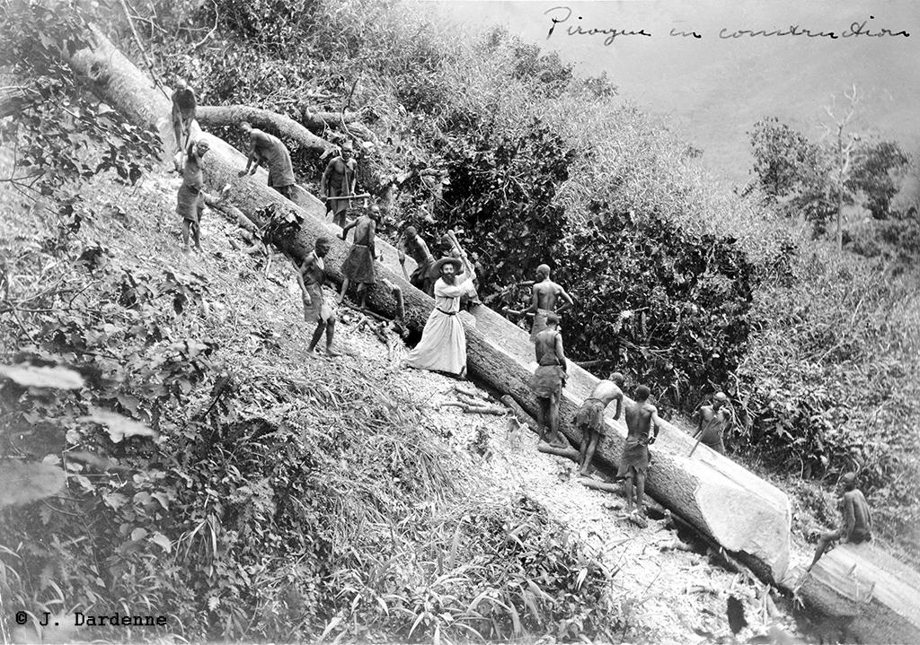 - "Taille d'une Pirogue" (1917), d'une grande longueur, semblant sortir d'une case de "Tintin au Congo" (1931), un Père blanc travaillant activement aux côtés des autochtones.