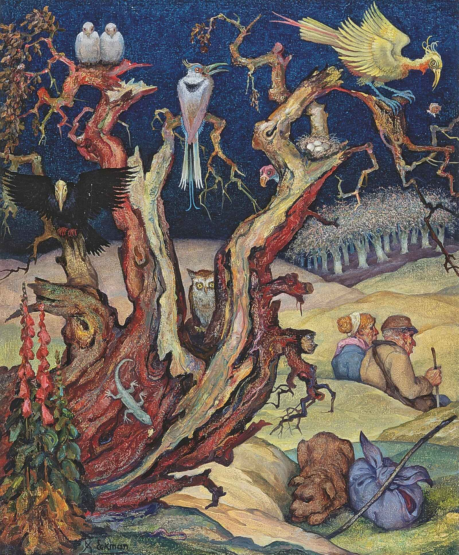 C’est avec curiosité que nous découvrons l’univers onirique de Nicolas Eekman, véritable éloge au fabuleux et au fantastique, aimant utiliser la technique des primitifs flamands, quatre à cinq siècles avant lui, telles celles de Jan Van Eyck (vers 1390-1441) et de son frère Hubert (1366-1426), qui, au début du XVè siècle, perfectionnèrent la peinture à l’huile.