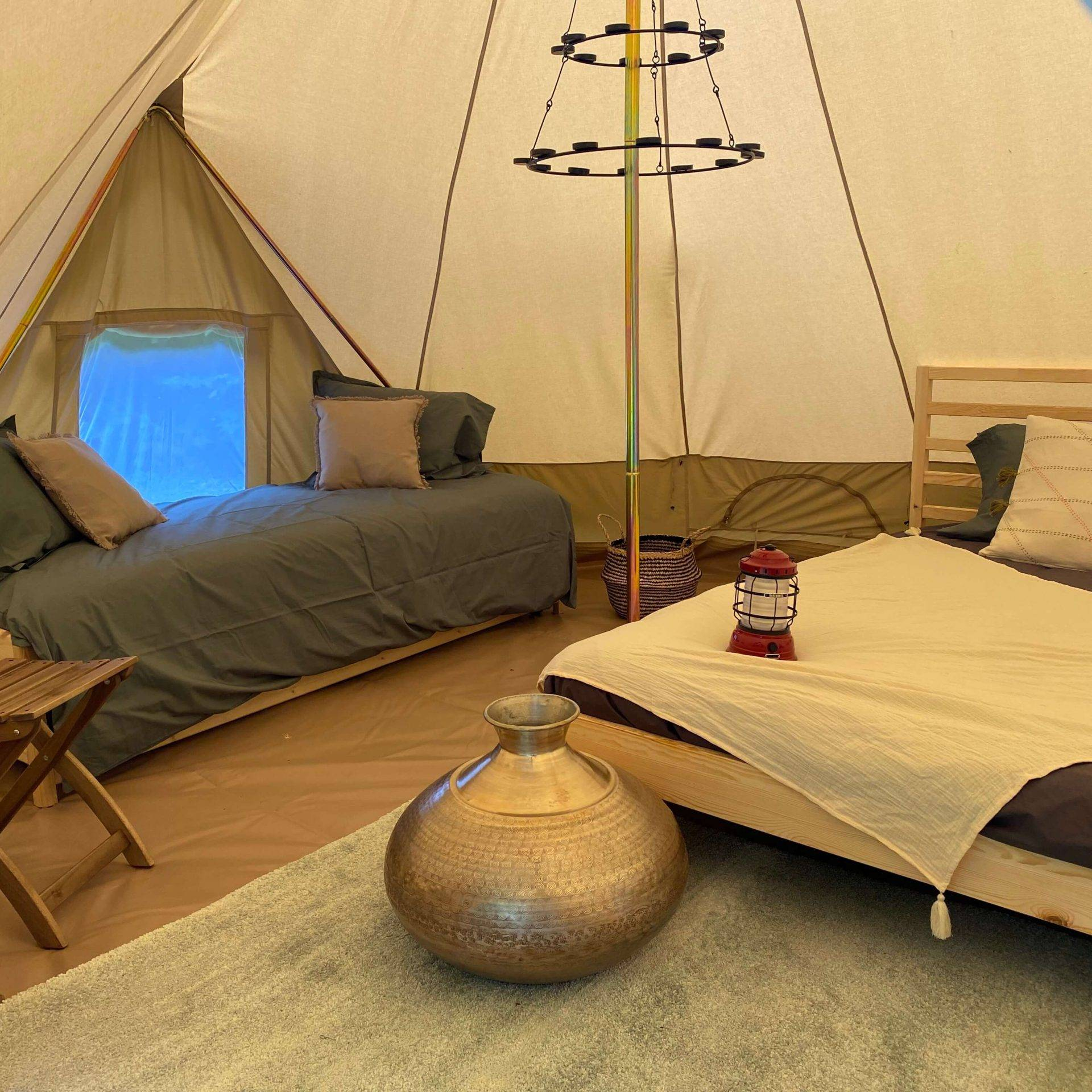 - du luxueux camping « Prestige Glamping » (220€, la nuit, pour 1 ou 2 personnes, 25€, par personne supplémentaire/panier petit-déjeuner à 20€, dès 12 ans, ou 15€, pour les plus jeunes).