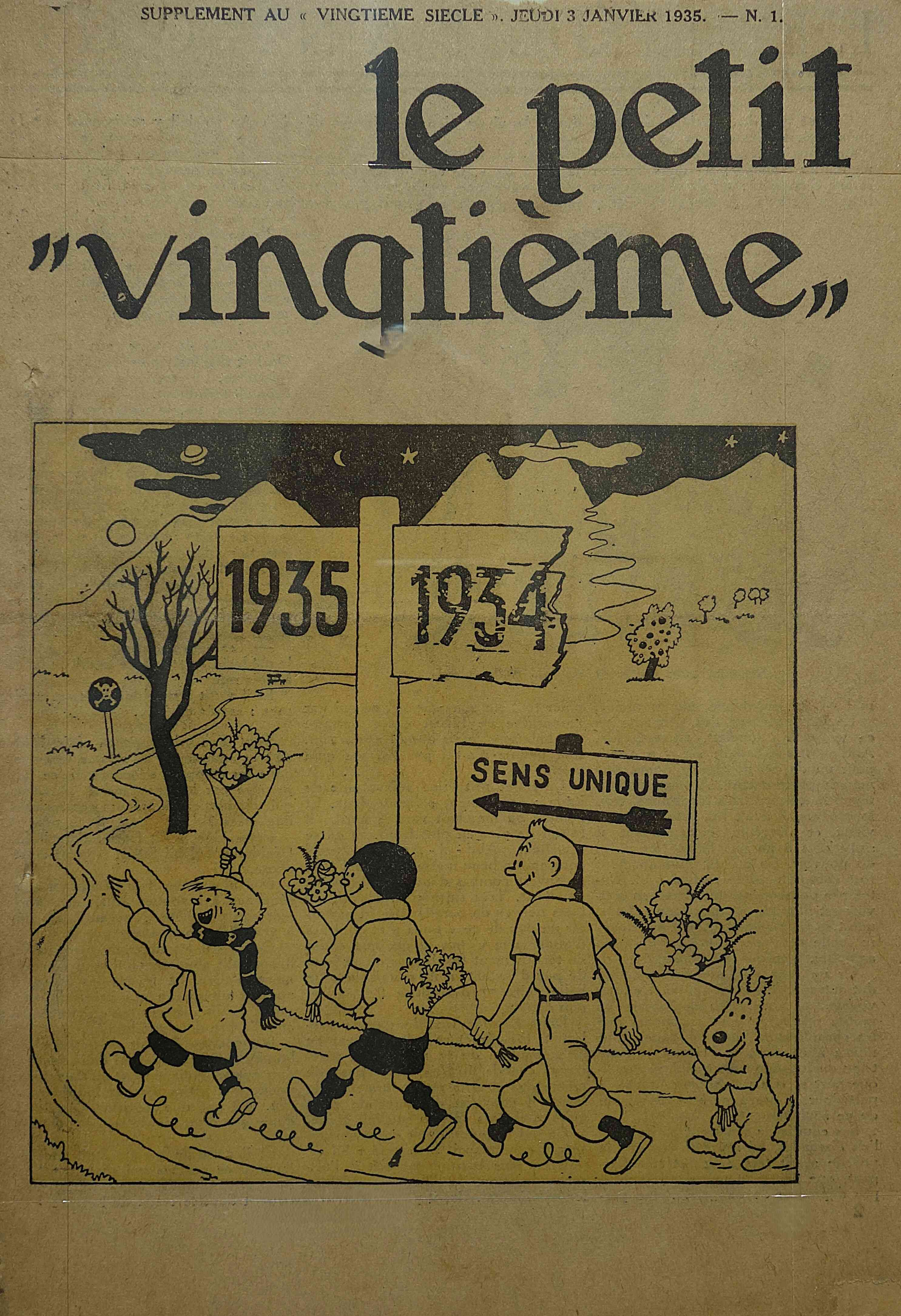 Proche de cette planche, nous trouvons une affiche du 23 janvier 1930, Quick interpellant les lecteurs du « Petit Vingtième » :« Bonjour les copains, vous ne me connaissez pas ? … Hé bien, je suis Quick, gamin de Bruxelles, et, à partir d’aujourd’hui, je suis, ici, chaque jeudi, pour vous raconter ce qui m’est arrivé pendant la semaine. »