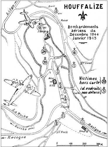 L’association « Houffalize se souvient » a été fondée fin 1983 " parce que rien ne marquait à Houffalize le souvenir du massacre de quelque 190 victimes civiles, foudroyées lors des bombardements de 1944/1945".
