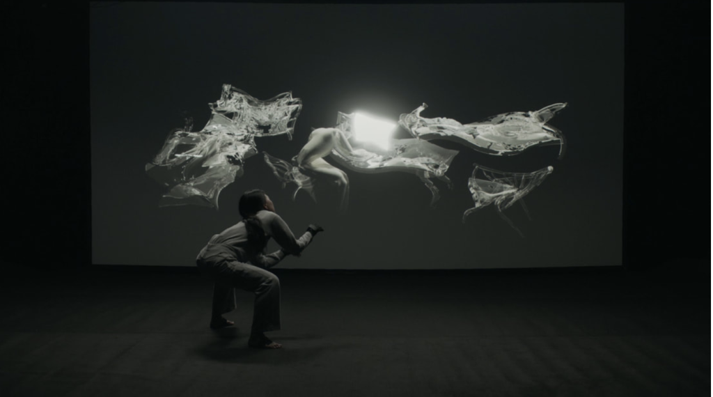 Parmi la cinquantaine d’artistes, étudiants et professeurs, présentant leurs oeuvres à « Panorama 25 », évoquons l’artiste sud coréenne Jisoo Yoo (°Séoul/1990), qui, passée par « Le Fresnoy » et l’ « École nationale supérieure d’Art Paris-Cergy », nous propose son installation « Le plus ordinaire, le plus illusoire » (2023), une performance interactive, en « temps réel », rendue possible grâce à la « motion capture », étant composée de deux vidéos-projections restituant l’image en mouvement, à la fois vue par le spectateur, témoin du monde réel, et vue par le biais d’une caméra située dans le monde virtuel.