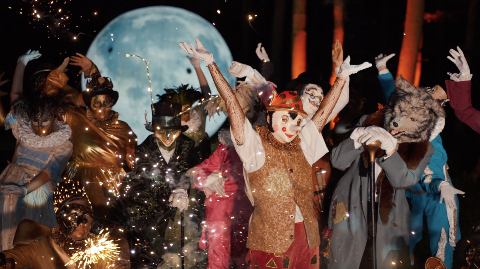 Tout commence, assis devant une première des neuf scènes du spectacle itinérant, à l’entrée du domaine de Beloeil, « Geppetto », sculpteur sur bois, se promnène parmi les enfants, manipulant sa création, une marionnette, à qui il donna le nom de« Pinocchio ».