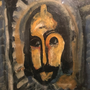 Notons que c’est dès la redécouverte des arts du Moyen Âge et jusqu’à la fin du XVIIIè siècle, que la référence à l’icône s’impose dans l’histoire de l’art profane. Dès le XIXè siècle, des œuvres polymorphes éclorèrent, se référant à la composition frontale et sans profondeur de l’icône.
