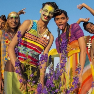 Ayant toujours été attiré par l’Inde et ses incroyables contrastes de chaos ambiant et d’harmonie cosmique, notons que ces photos de Tim Walker – rendant hommage au dynamisme et à la dimension mystique de l’Inde et à sa riche tradition du conte – furent réalisées dans des champs de fleurs du Worcestershire, riches en dauphinelles, baignant dans une intense lumière, pendant un été de canicule. Mettant en scène son amour des contrastes chaotiques de la culture indienne, il invita une brassée de créatures hybrides aux robes exubérantes, juste débarquées d’un songe psychédélique.