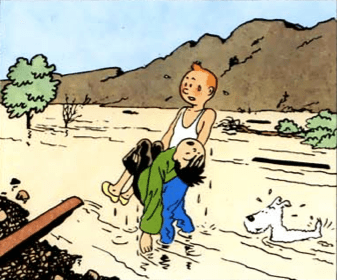 Soulignant l’appui apporté parTchang Tchong-jen, dans la rédaction chinoise fidèle des textes des banderolles et enseignes présentes au sein du « Lotus bleu », notons encore une autre réponse de Pierre Baptiste, figurant en page 38 : « Tchang Tchong-jen a vraiment joué un rôle de directeur artistique ». Par ailleurs Christophe Quillien écrit, en page 12 : « Et si la plus belle aventure, c’était la rencontre de l’autre ? En embarquant, ans le ‘Lotus bleu’, pour l’Empire du Milieu, Tintin s’apprête à découvrir une Chine mystérieuse, intrigante recelant mille secrets… Mais le plus beau trésor qu’il gardera de ce voyage en Extrême Orient sera son amitié avec le jeune Tchang. Une histoire qui évoque celle d’Hergé et d’un ami perdu puis retrouvé », qui deviendra un personnage de BD, tant lors de cette inondation qu’au sein de « Tintin au Tibet », édité en 1960, par « Casterman ».
