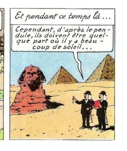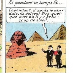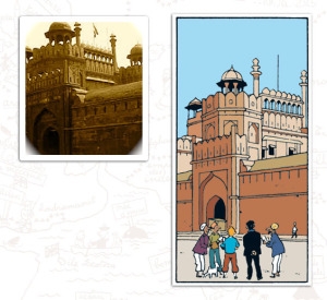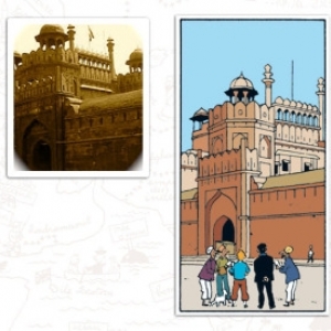 Ainsi, à la page 120, nous serons en Egypte, près du Sphinx et des Pyramides, avec les Dupondt, et à la page 121, avec Haddock et Tintin, en Inde, devant le Fort Rouge, de Delhi.