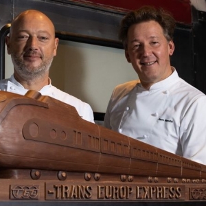 Ces dernières, autrefois, décoraient l’une des voitures d’un « TEE » (« Trans Europe Express »), exposée plus loin, face à de somptueuses voitures de deux trains royaux, ces différents trains ayant inspiré, également, nos deux sculpteurs chocolatiers.