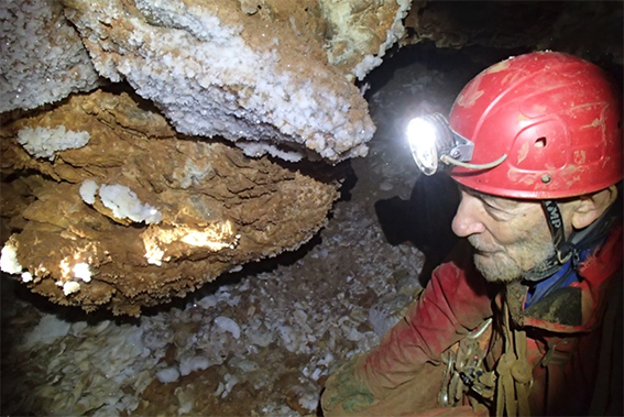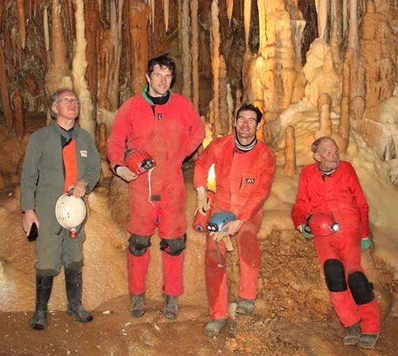 • A gauche : Bernard Magos. Le réseau Bernard Magos se trouve dans le Gard sur la commune de Barjac. Il a été découvert par une équipe constituée de Bernard Magos, Guido Goossens, Nicolas Richardeau et Patrick Soetens. Il renferme de magnifiques cristallisations parfaitement préservées grâce aux mesures de protection mises en place immédiatement après sa découverte. Bernard Magos.