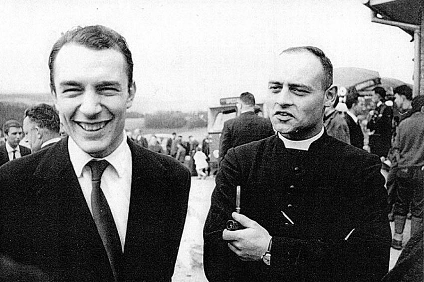 • 1962, inauguration de l’ouverture de la Grotte de Hotton au public. De gauche à droite - Bernard Magos et Jacques Stas. Ph – Edouard Van Leeuw.