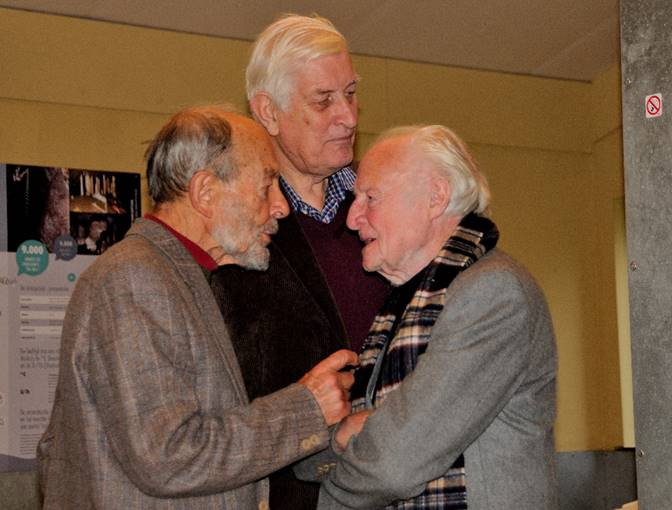 • 2011, célébration du 50ième anniversaire de l’ouverture de la Grotte de Hotton au public. De gauche à droite - Bernard Magos, Jean Pierre Van den Abeele et Paul Vandersleyen. Ph - Daniel Vanden Bosch.