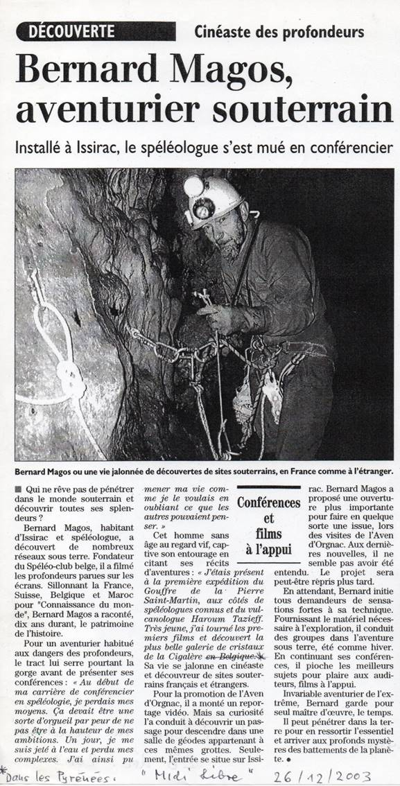 • 2003-12-26 Bernard Magos aventurier souterrain