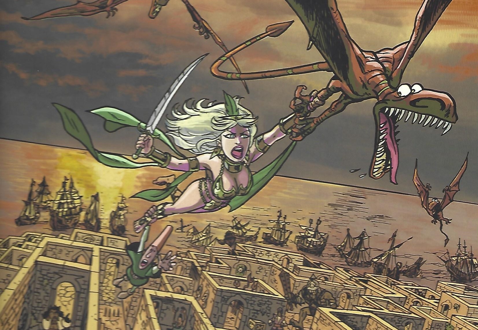 Qui est vraiment Zark le marin ? Un fieffé menteur ? Peut-être… toujours est-il que son histoire d’épée diabolique, forgée il y a 500 ans par un mage maudit pour l’amour d’une reine, draine beaucoup de monde dans son sillage : des aventuriers, de cruelles amazones assoiffées de pouvoir, de mystérieux inconnus venus de contrées lointaines…et surtout, la princesse Irina et son esclave Adelin !
