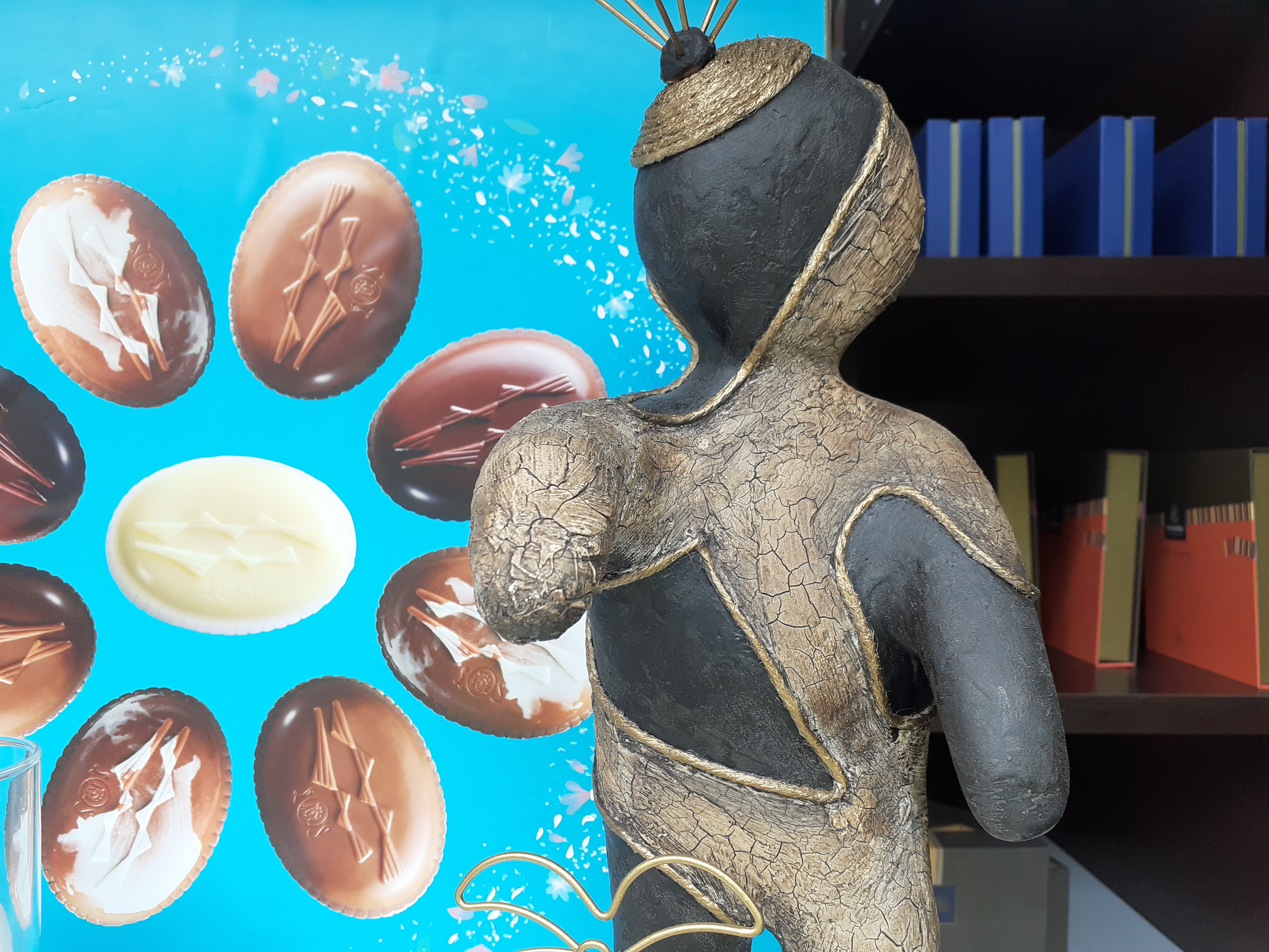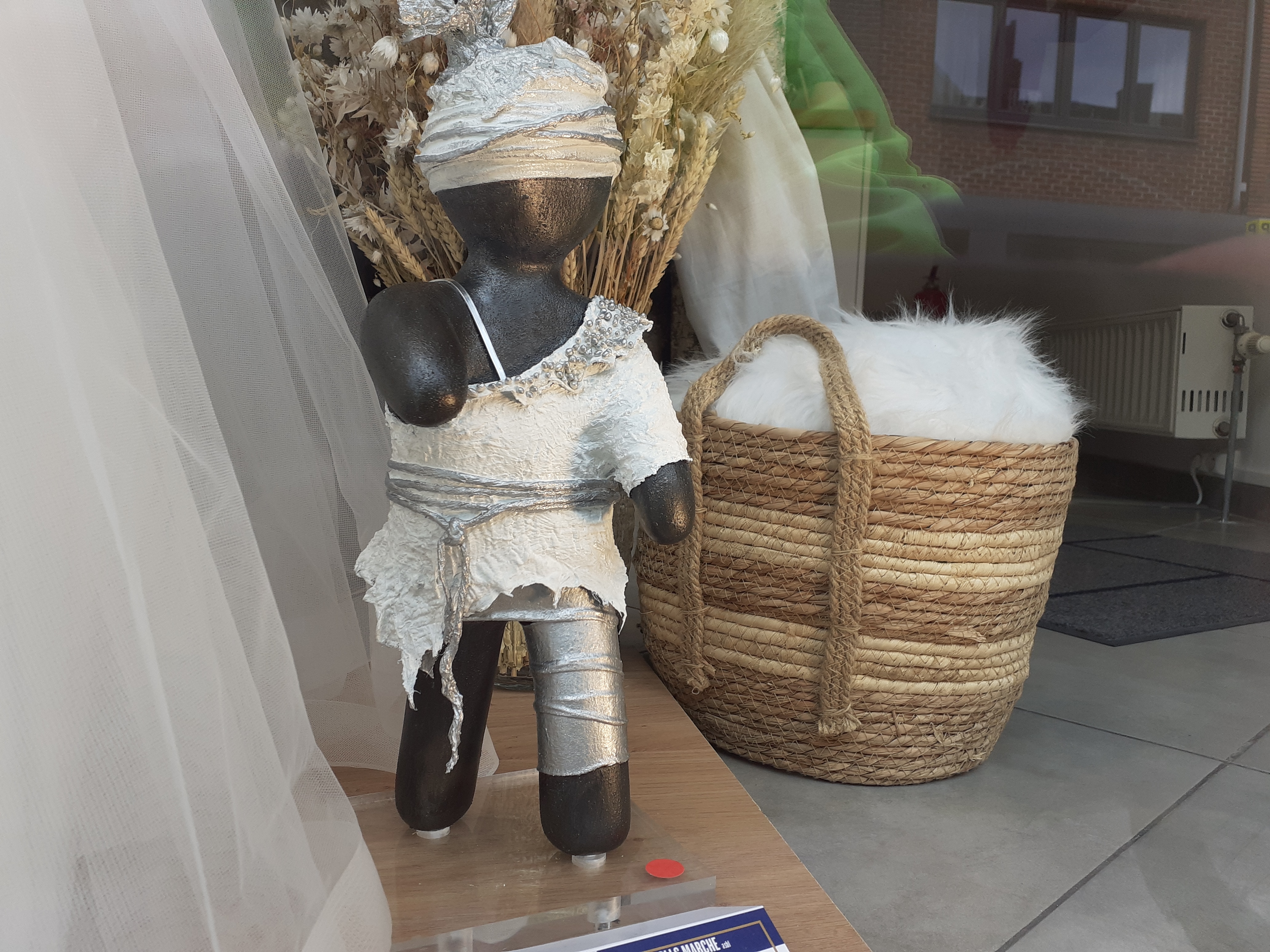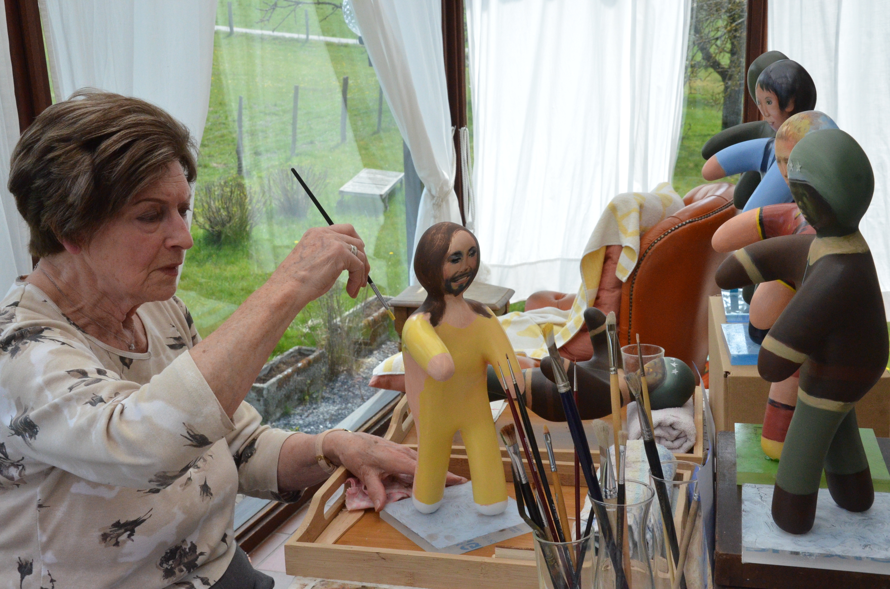 Quelques artistes sont encore au travail et leurs oeuvres font leur apparition au jour le jour dans les vitrines des commerçants . Marie Elise, une artiste de Bastogne est toujours occupée à terminer des commandes.