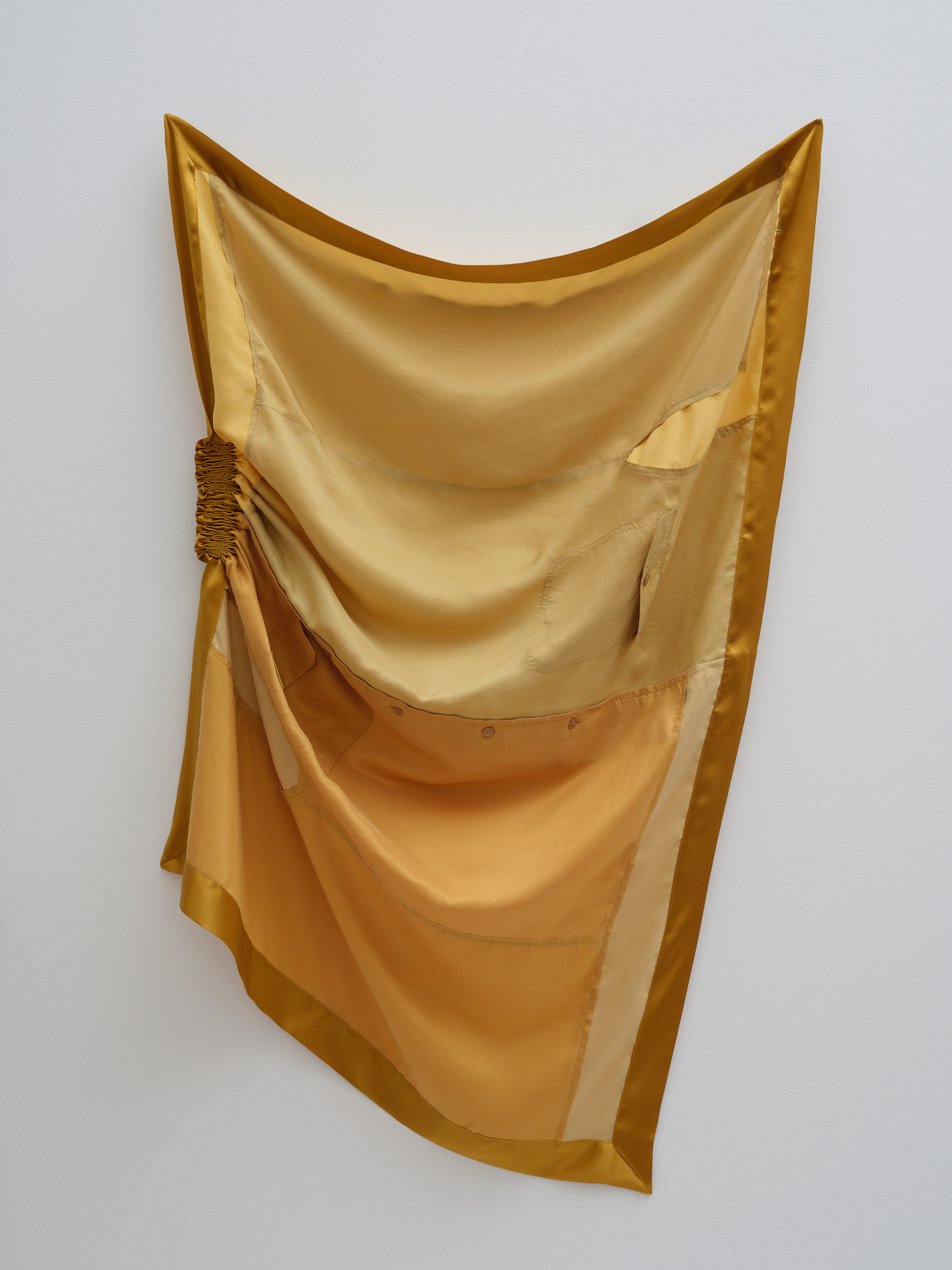 Guidé par les histoires personnelles de leurs propriétaires qui transparaissent dans les objets et les matières, l’artiste fait émerger du tissu ses singularités, telles que les motifs, les monogrammes ou les plis. Ceux-ci sont autant de traces du passé, à la fois proche et lointain, de souvenirs encore présents dans sa mémoire. Daniel Henry renforce ces traces, voire les crée par impression, dorure ou assemblage. Il les refaçonne, les magnifie et les fige dans la matière, allant jusqu’à l’abstraction, dans un geste de conservation amplifié, telle une « fossilisation » des récits de vie.