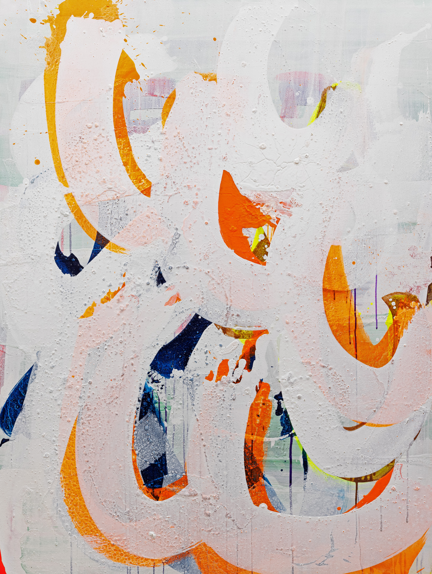 Les différentes images étant en étroite relation formelle les unes avec les autres, tout en refusant de pénétrer plus en profondeur, les lignes de connexion spatiales forment un fin réseau d'énergies travaillant à la cohérence, dans lequel les éruptions des différents décors s'équilibrent les unes aux autres. L'expérience des interactions entre les formes, les codes et les couleurs d'une toile pouvant alors être étendue sans fin aux individus d'un groupe et finalement à l'espace entier, dans lequel la dépendance des tableaux se reflète comme une négociation constante de son propre positionnement